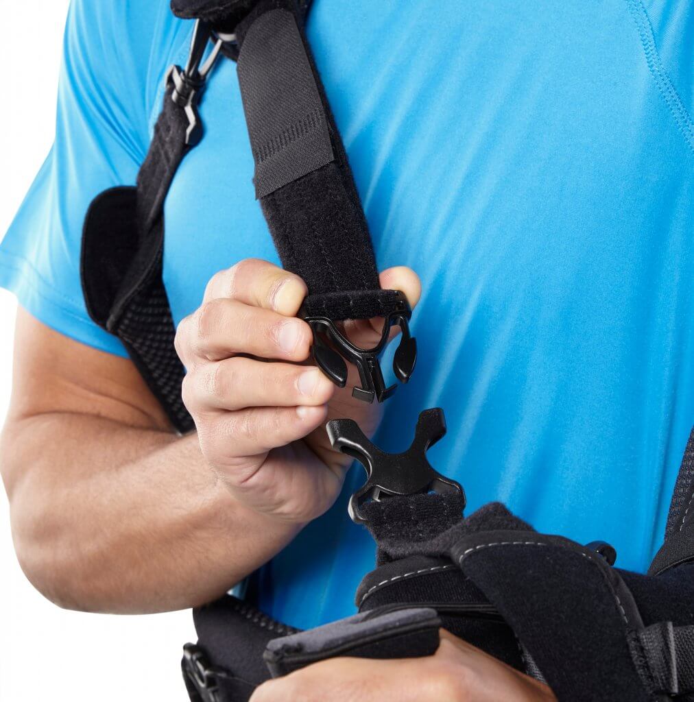 Aluminum waistband is moldable to each patient’s unique torso shape and prevents anterior migration that is common with shoulder braces. The ARC® 2.0 universal sling design folds to fit every patient with one brace – right or left, football player or gymnast. The ARC® 2.0 features 2.0 material for maximum breathability and comfort. 2.0 material moves moisture away from the skin to another layer of fabric for quick evaporation.