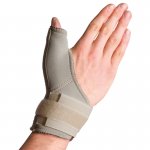 The Thermoskin Thumb Stabilizer features a rigid splint to support the carpometacarpal (CMC) joint and may be useful in reducing the affects of thumb hyperextension. This thermal stabilizing orthosis may be useful in the treatment of UCL injuries caused by work related repetitive strain, ball sports and skiing. Support includes locking strap to secure splint/brace in position. Universal design fits right or left hand.